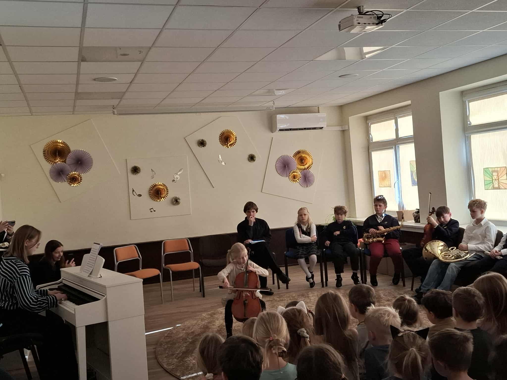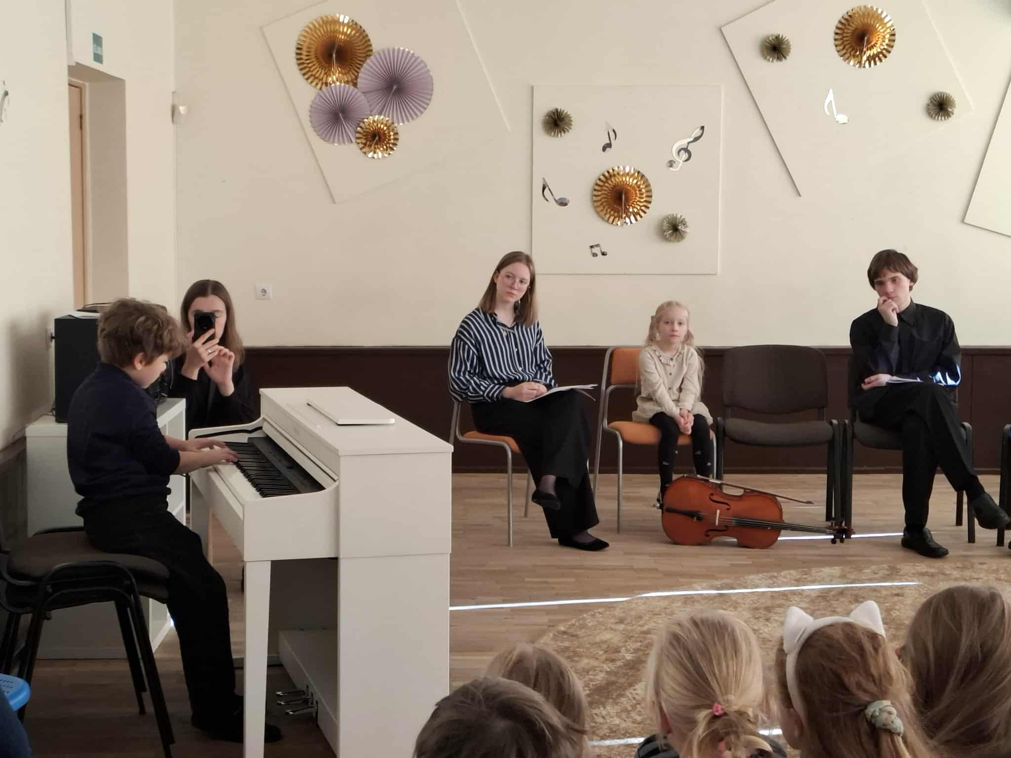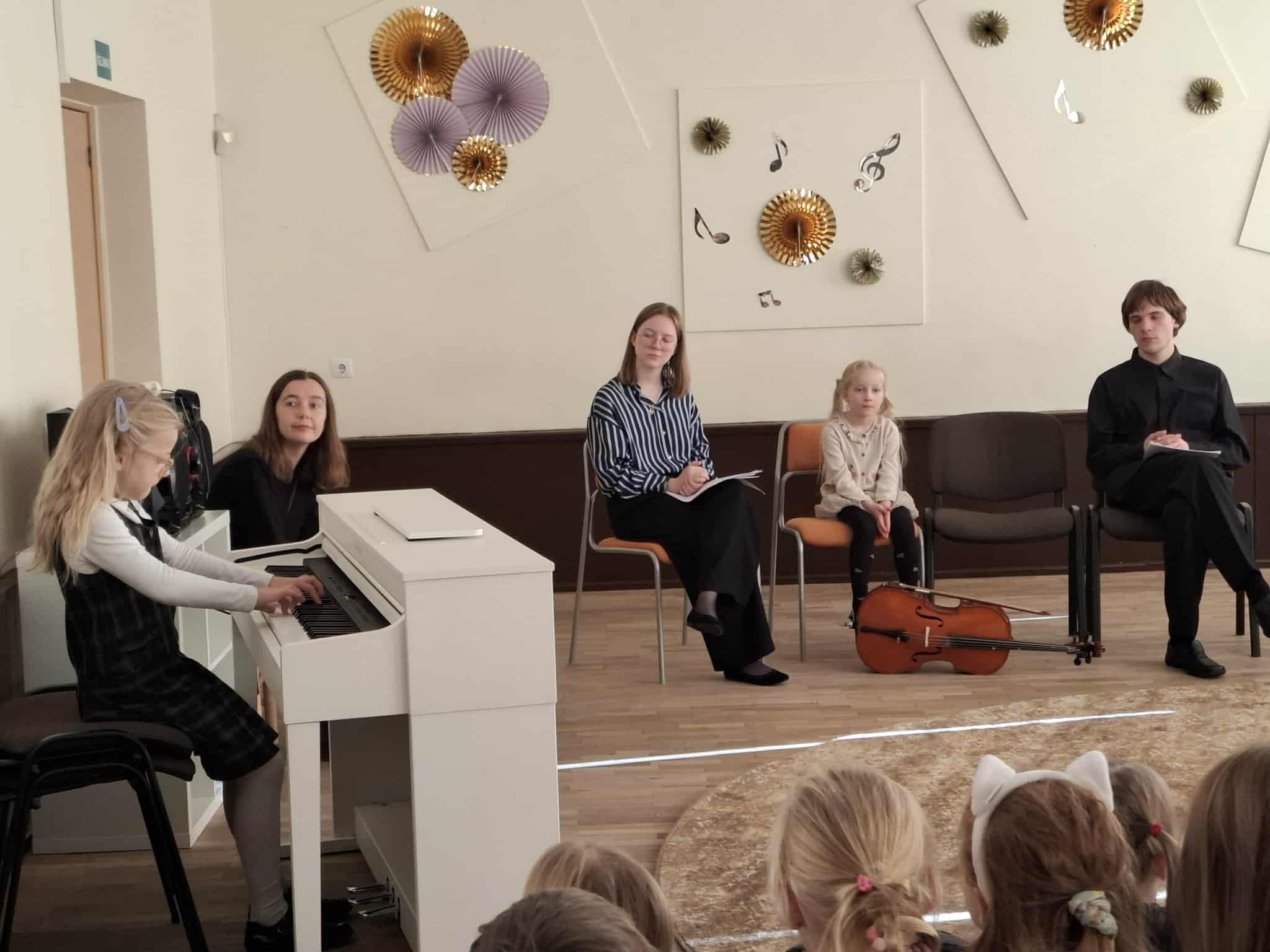 Šiandien Ežiukai, Vyturėliai, Drugeliai, Ąžuoliukai, Saulutės, Žvaigždutės ir Smalsučiai klausėsi M. K. Čiurlionio menų mokyklos moksleivių koncerto