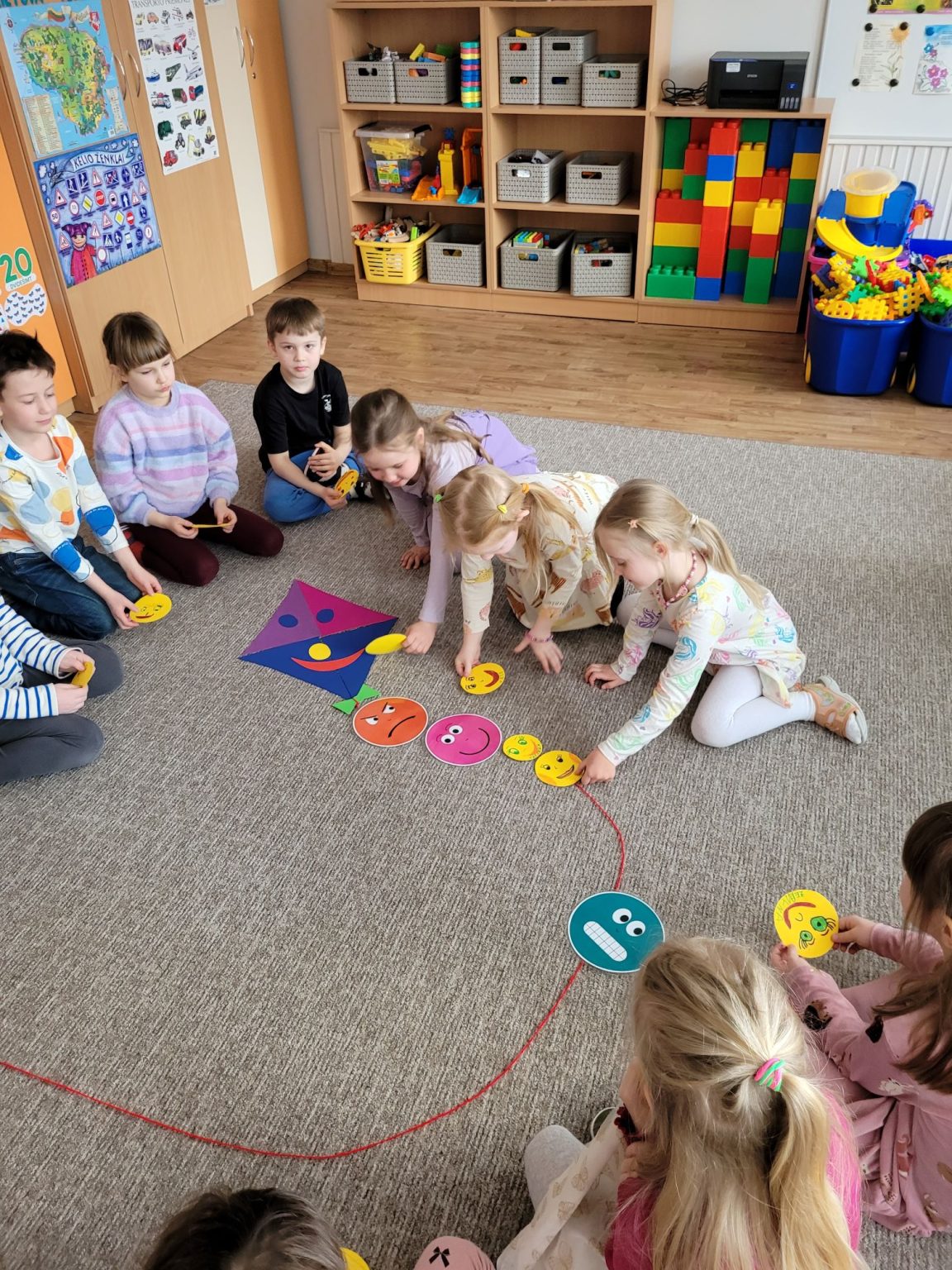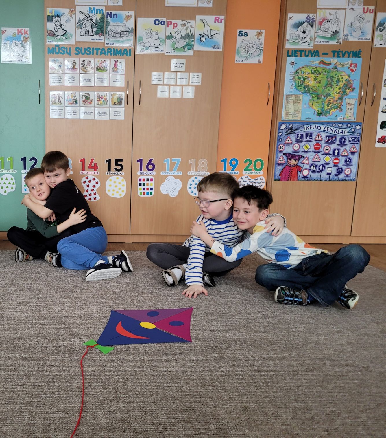 Trečiosios veiklos metu kūrėme „Vyturėlių“ draugystės aitvarą, kurį papuošėme emocijų veidukais. Šis kūrybinis darbas priminė, kad draugystėje svarbu pastebėti vienas kito jausmus, būti atidiems ir padėti šalia esančiam. Ketvirtosios veiklos metu ieškojome „Geros išeities taisyklės“ – sprendimų, kurie padeda pasijusti geriau ir nekenkia nei sau, nei kitiems. Vaikai mokėsi, kaip tinkamai spręsti nesutarimus ir rinktis draugišką elgesį kasdienėse situacijose.