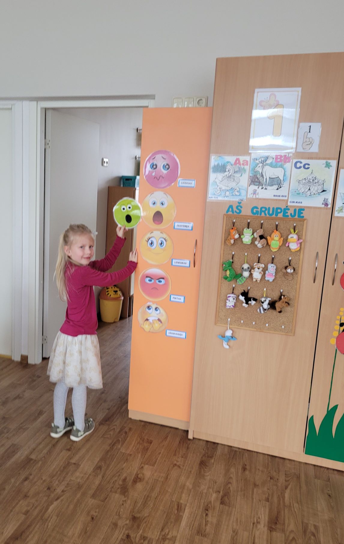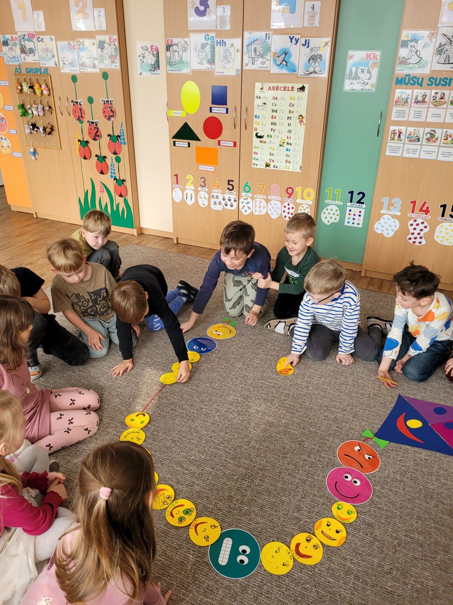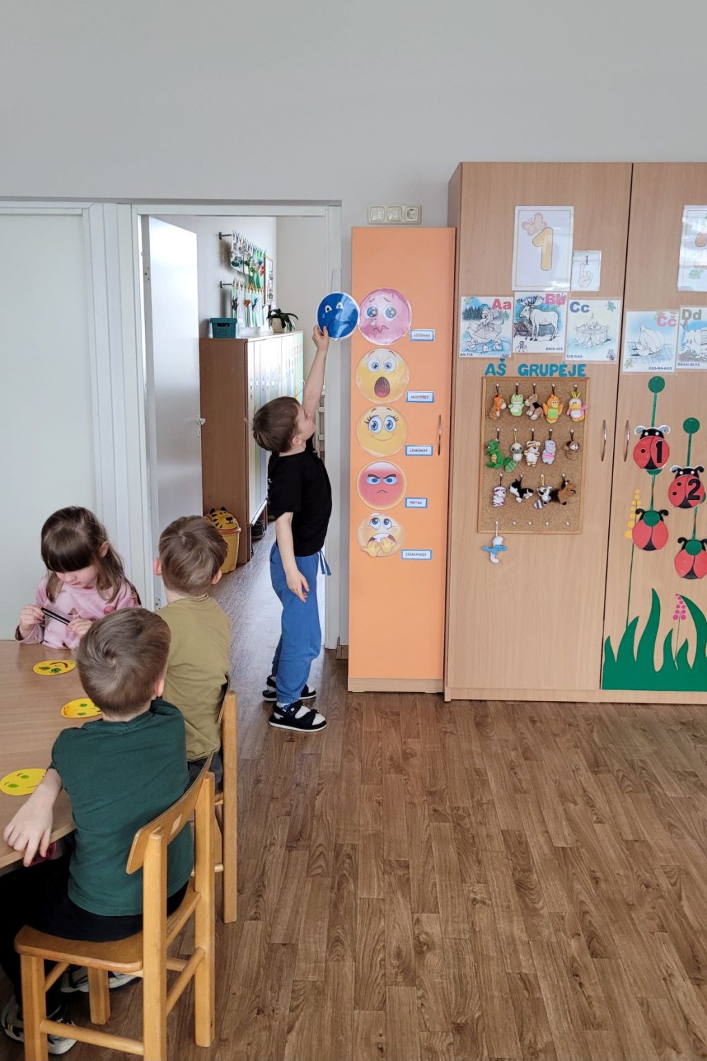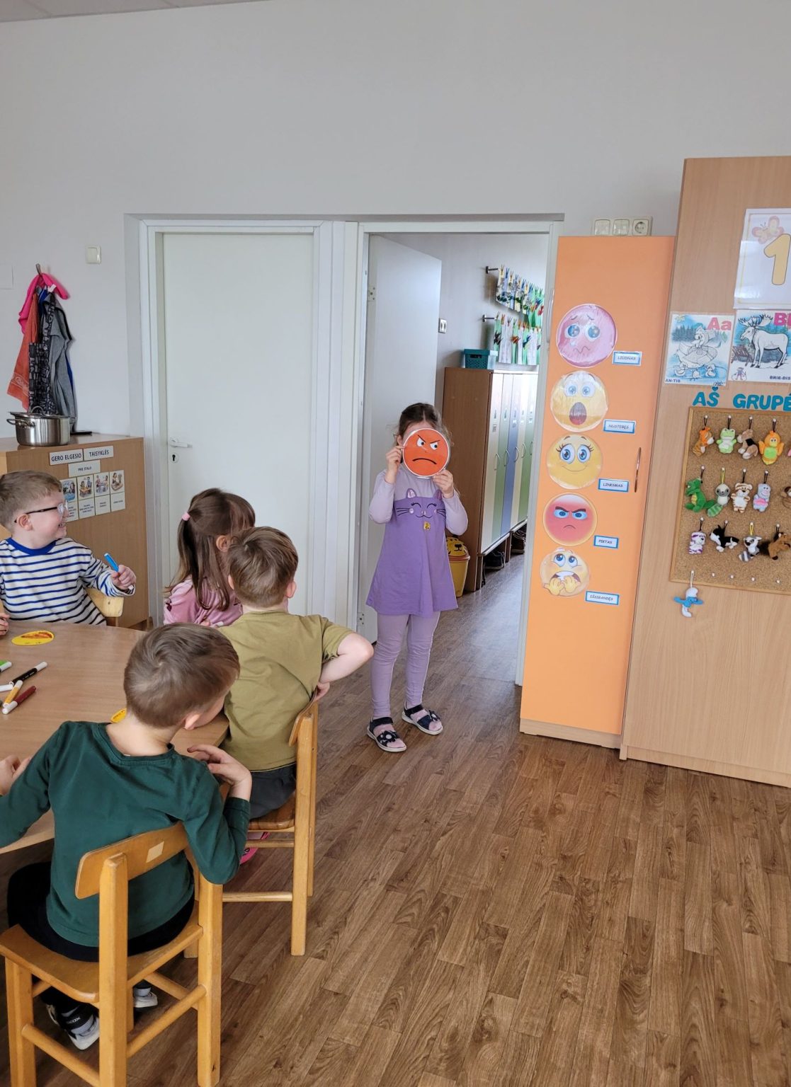 Pirmosios veiklos metu vaikai mokėsi atpažinti ir įvardyti savo emocijas. Kalbėjomės apie džiaugsmą, liūdesį, pyktį, baimę ir kitus jausmus, aptarėme, kaip jie pasireiškia ir kodėl svarbu apie juos kalbėti. Ši veikla padėjo vaikams geriau suprasti save ir kitų emocijas.