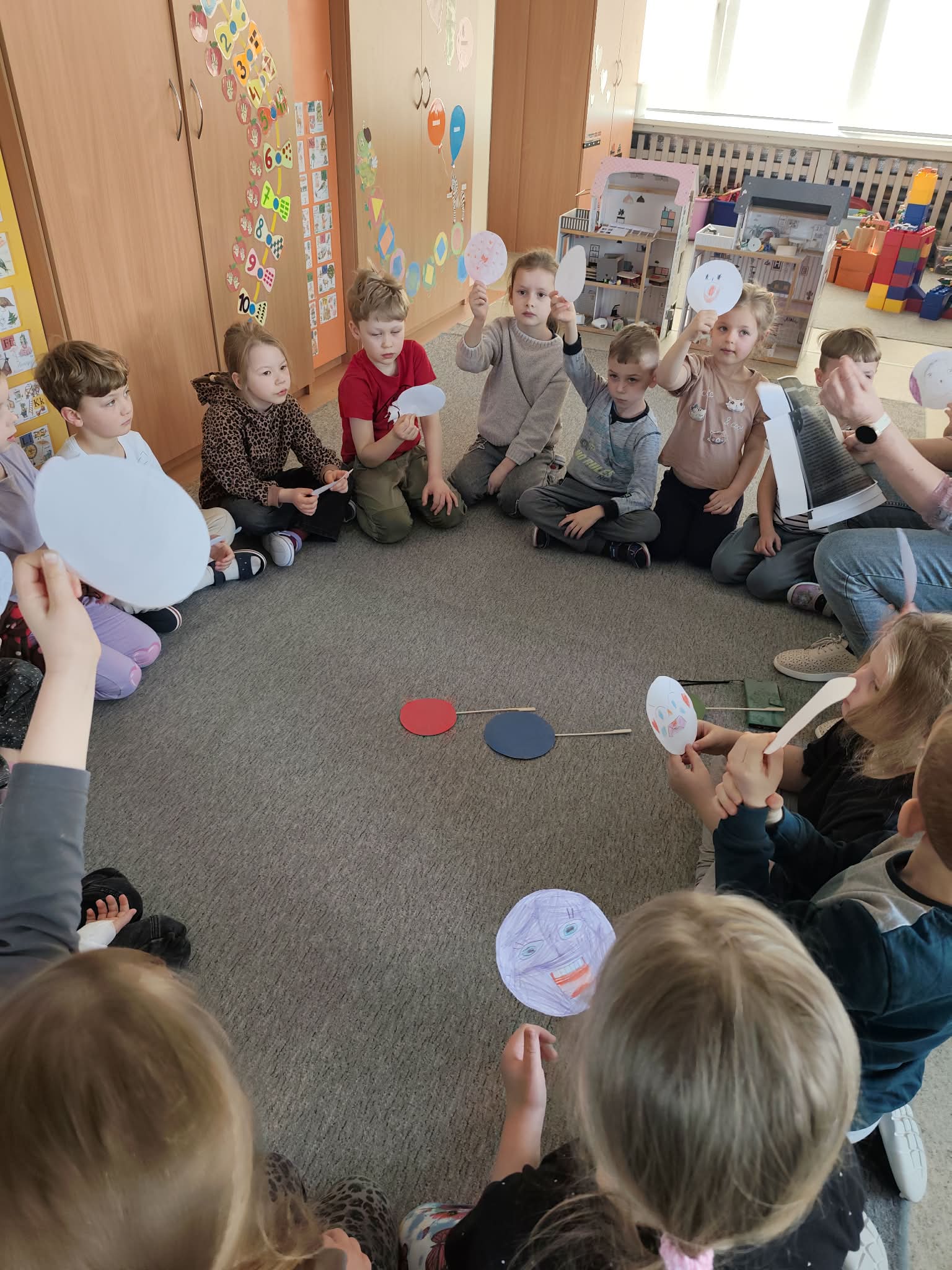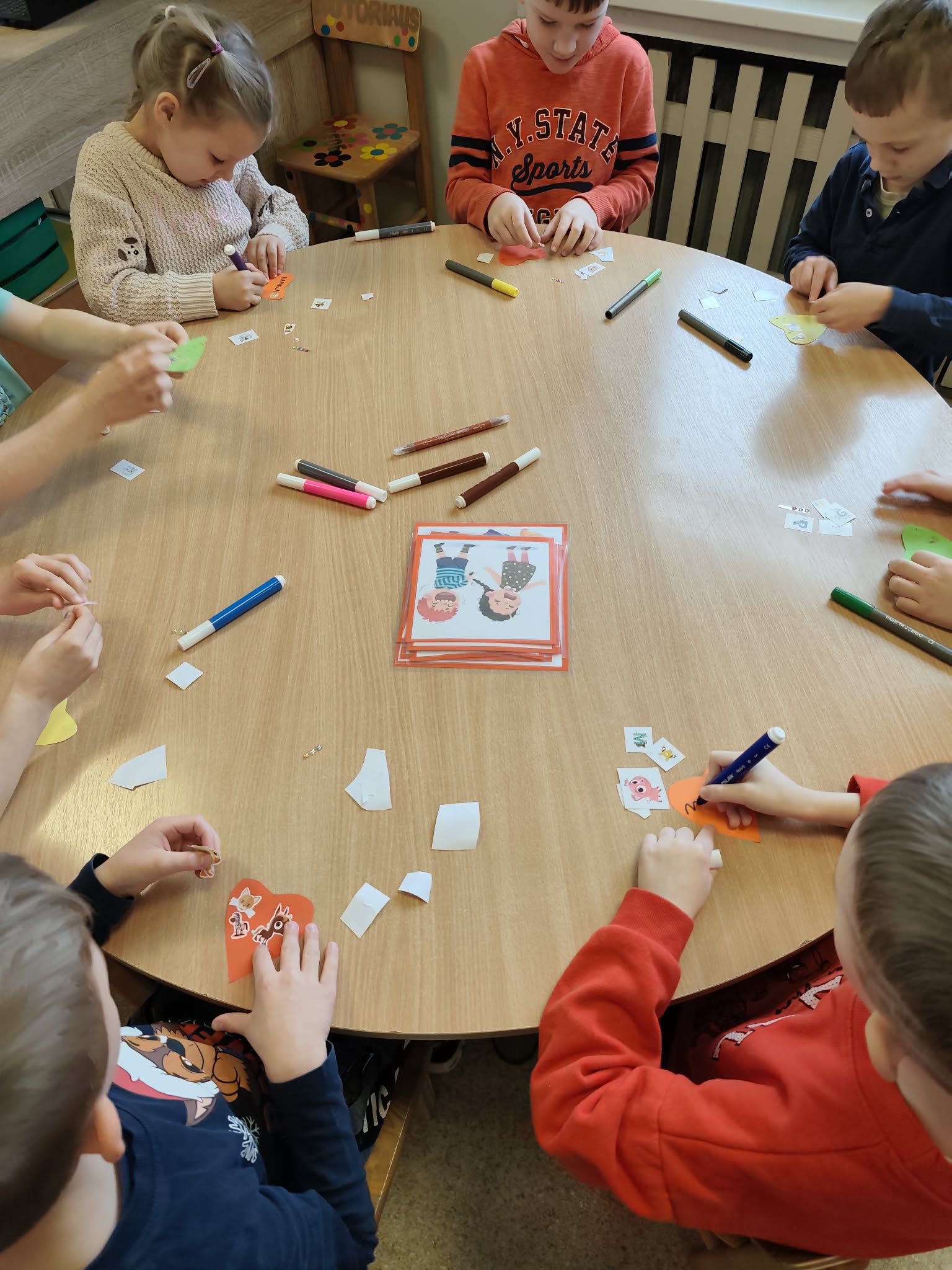 Šiuo laikotarpiu vaikai dalyvavo įvairiose prasmingose veiklose, kurios skatino atpažinti emocijas, kalbėti apie jausmus ir stiprinti tarpusavio ryšį. Socialinė pedagogė vedė užsiėmimą apie patyčias, kurio metu vaikai piešė emocijų veidukus, mokėsi atpažinti savo ir kitų jausmus, aptarė draugiško elgesio svarbą.