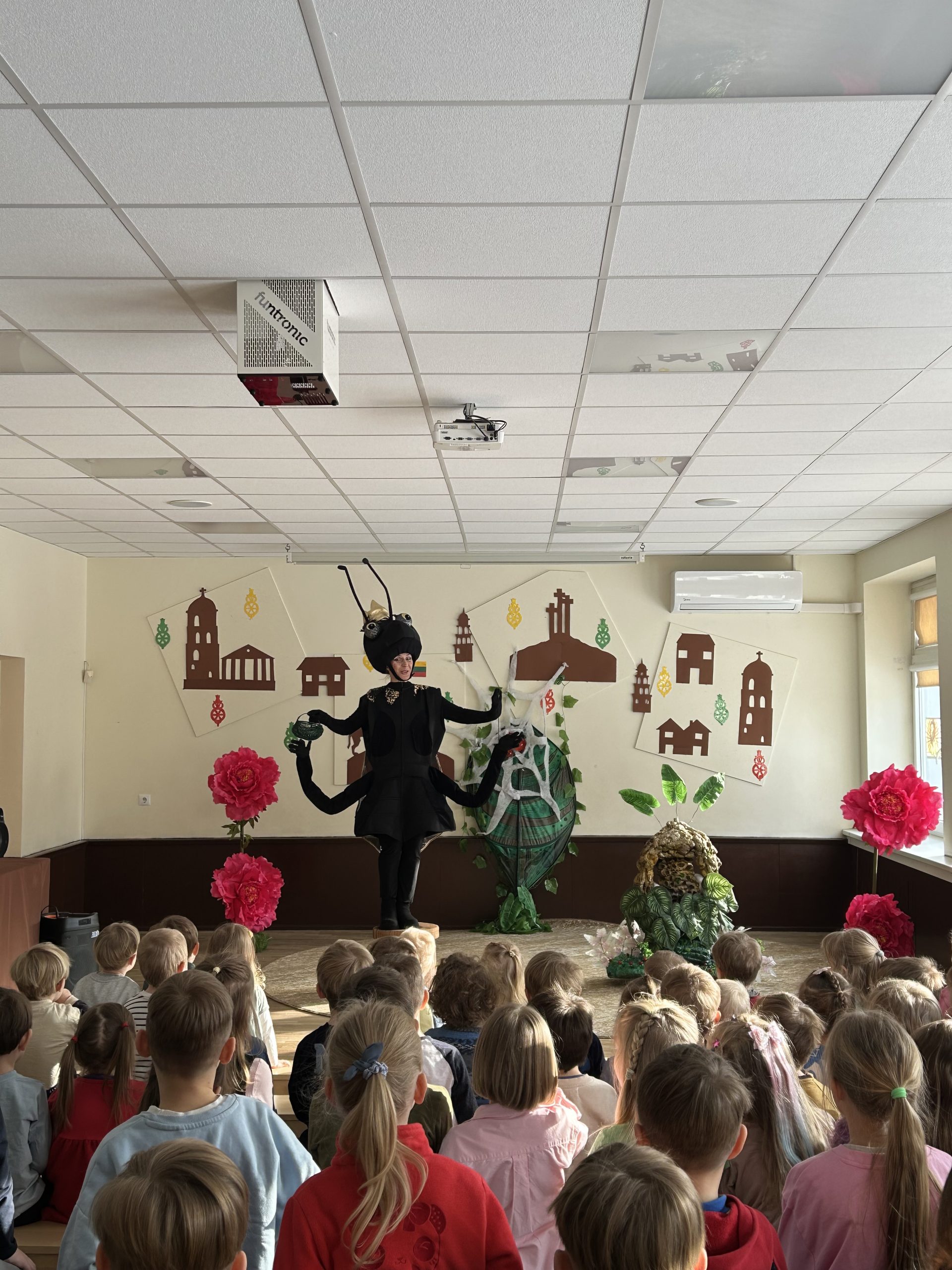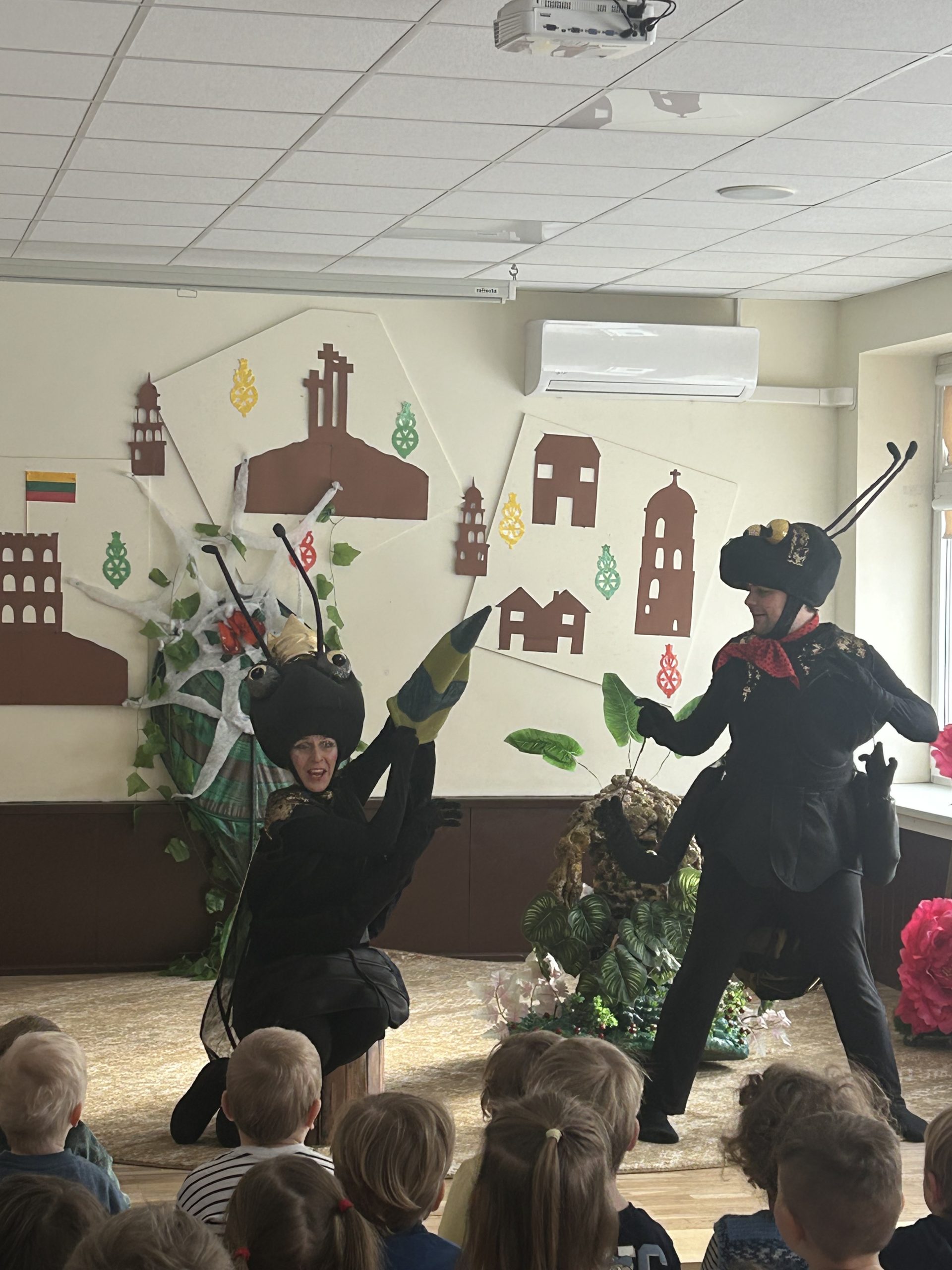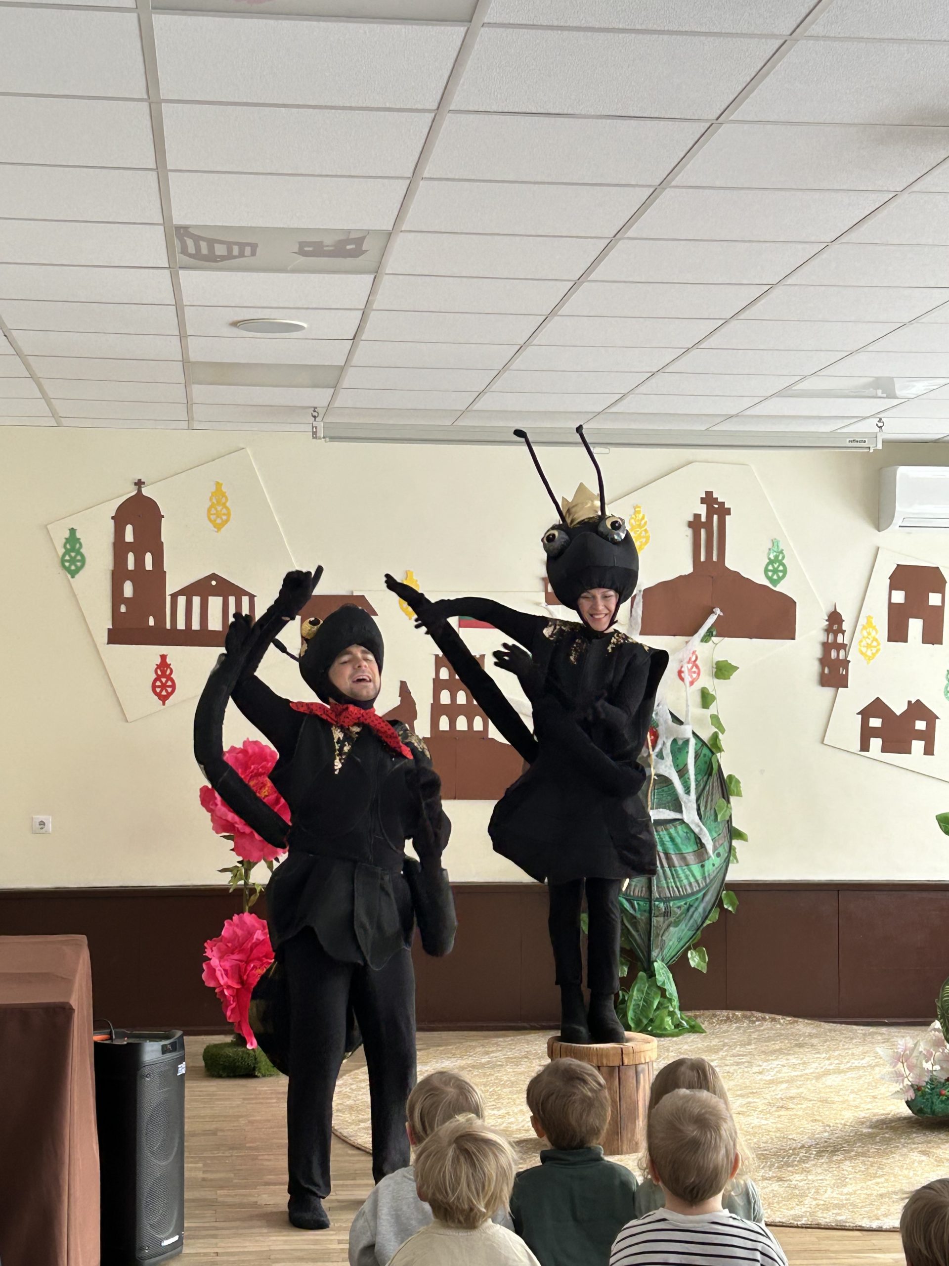 Tai buvo nuotaikinga kelionė kartu su be galo smalsiu Skruzdėliuku, kuri vaikus nukėlė į gamtos mikropasaulį 🌞 Spektaklio metu vaikai susipažino su įvairiais gamtos gyventojais – vabaliukais, bestuburiais, ropliais ir kitais miško draugais 🐜🐌🪱🐞🦎