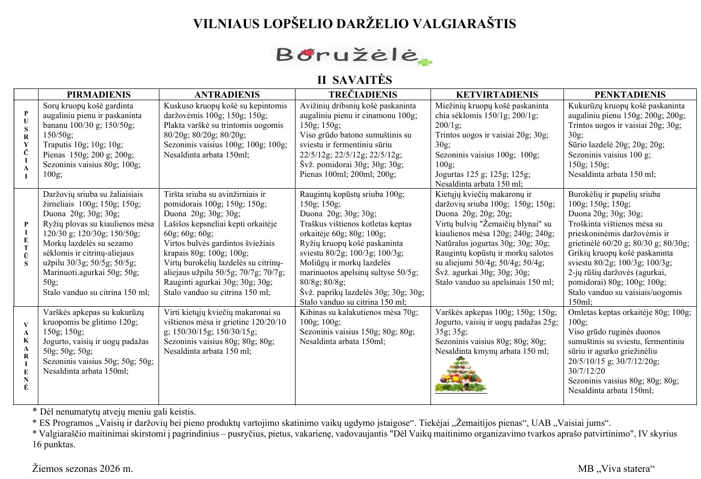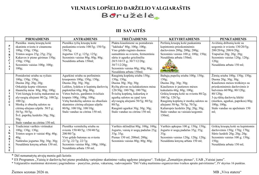 Valgiaraštis nuo 2025-12-15 iki 2025-12-20
