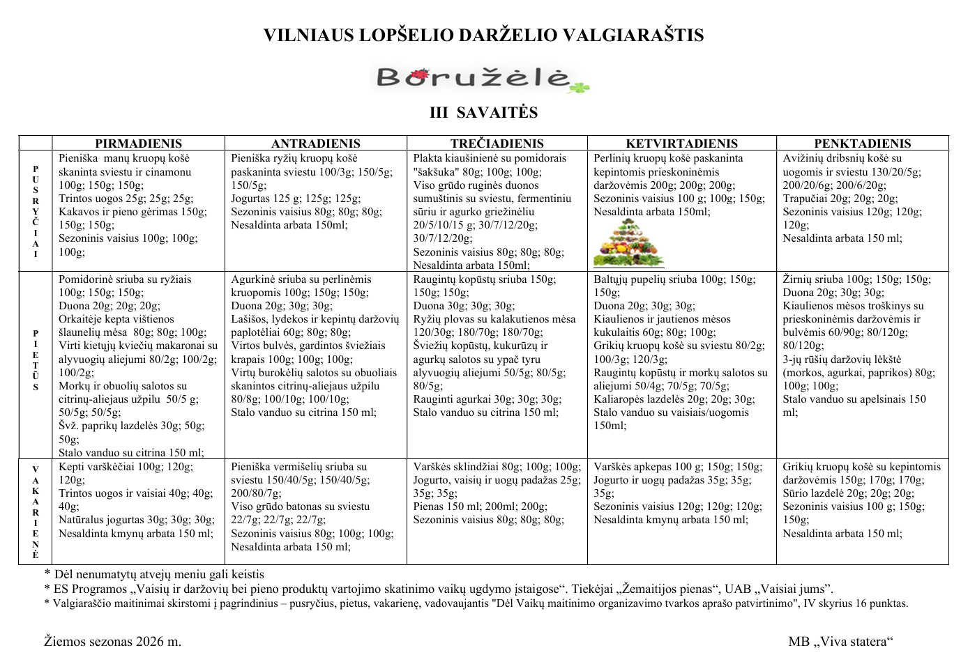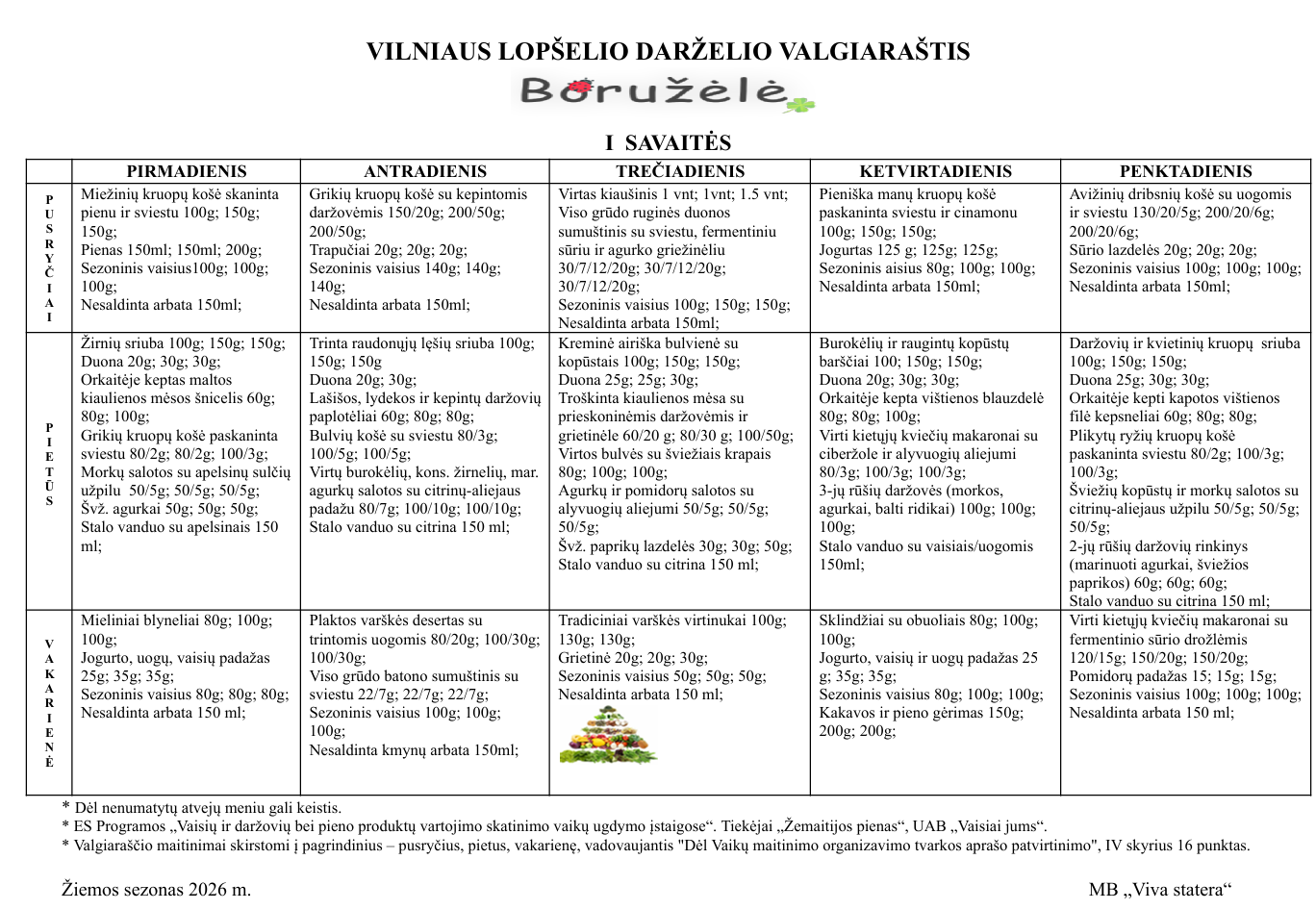 15 dienų valgiaraščiai 1–3 m. vaikams